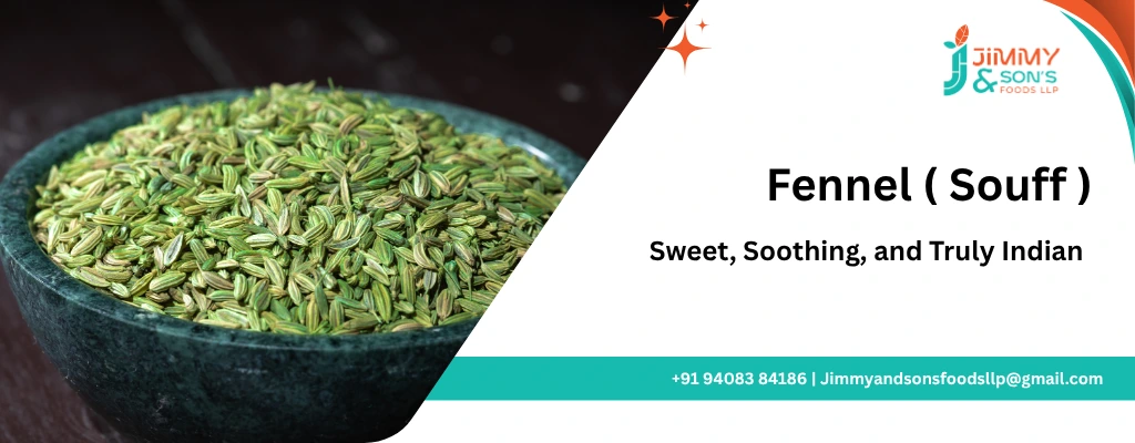 Jimmy & Sons is recognized as a reliable Fennel seed supplier and exporter from India. For inquiries and bulk orders, contact our export team and discover the excellence of Indian spices delivered with care, quality, and integrity.