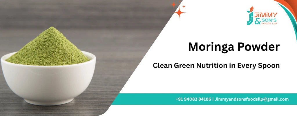 Jimmy & Sons offers nutrient-dense Moringa Powder made from shade-dried moringa leaves, packed with antioxidants, vitamins, and minerals. Perfect for smoothies, teas, supplements, and health foods—processed to retain maximum nutritional value.