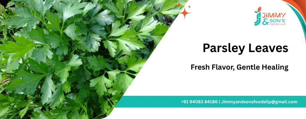 Jimmy & Sons offers premium-quality Parsley Leaves, rich in chlorophyll and antioxidants. Sourced from clean farms and dried with care, our parsley is ideal for seasoning, soups, and health blends promoting detox and digestion.